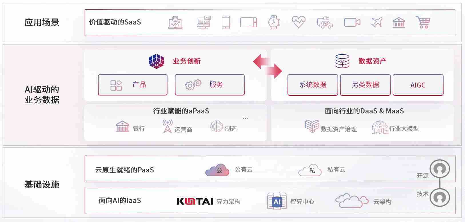 数字时代,,,围绕企业数字化转型的关键要素,,,GGPAY钱包数码开创性的提出数云融合战略和技术体系框架,,着力在云原生、、数字原生、、、AI原生和信创产业上架构产品和服务能力,,为处在不同数字化转型阶段的快消零售、、汽车、、金融、、医疗、、、政企、、、教育、、、运营商等行业客户提供泛在的敏捷IT能力和融合的数据驱动能力,,,构建跨界融合创新的数字业务场景和新业务模式,,,,助力企业级客户建立面向未来的核心能力和竞争优势,,,全面推动社会的数字化、、智能化转型升级。。